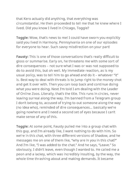 The full transcript to the Zooier Than Thou S1 E2.5 Zoosadism Leaks